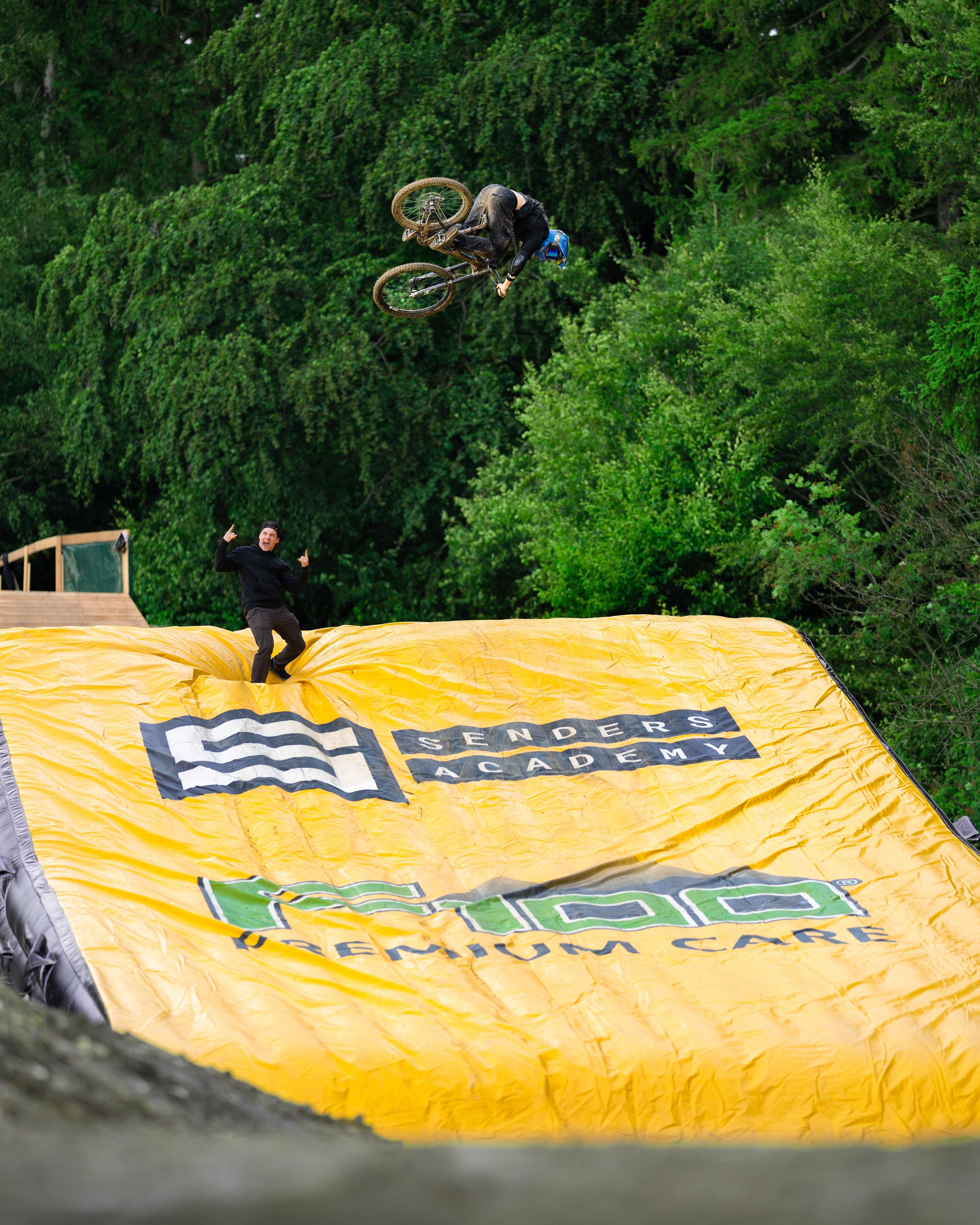 Im Übungsparcours der Bikwelt Schöneck gibt´s jetzt einen mega XXL Airbag-Jump! Dieser wurde vom Montainbike-Profi Elias Schwärzler beim Senders Academy Festival 2023 eingeweiht und ist jetzt ein fester Bestandteil des Bikeparks.